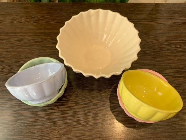 Set ensaladera Ostra + 4 compoteras decoradas