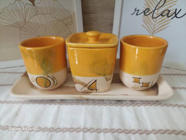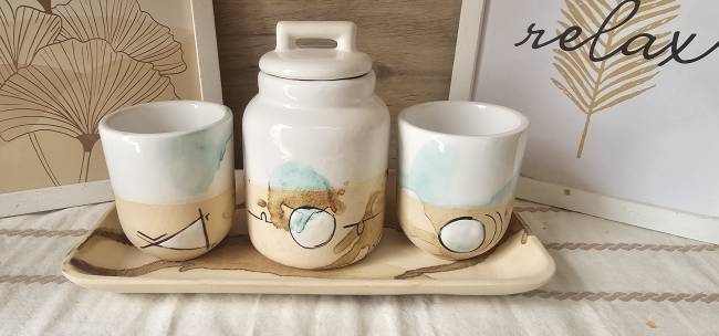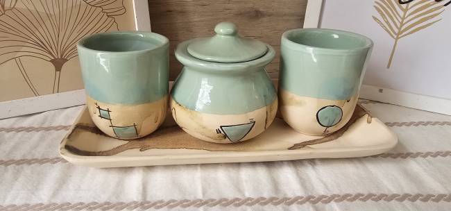 Set: 2 Tacitas Chinas Medianas + Azucarera + Bandeja Rectangular