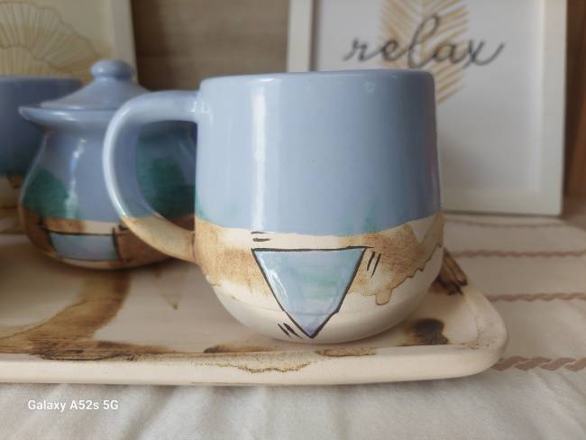 Set: 4 Tazas Pera Grande + Azucarera + Bandeja Grande