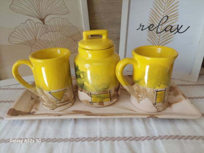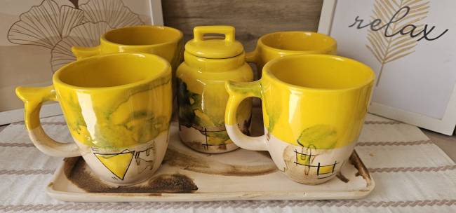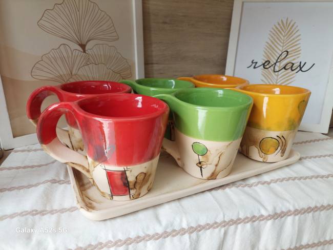 Set: 4 Tazas Redondas Grandes + Azucarera + Bandeja Grande