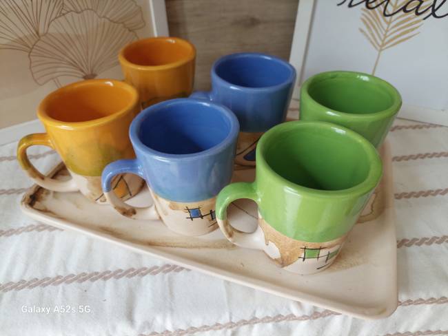 Set: 6 Tazas Redondo Mediano + Bandeja Grande