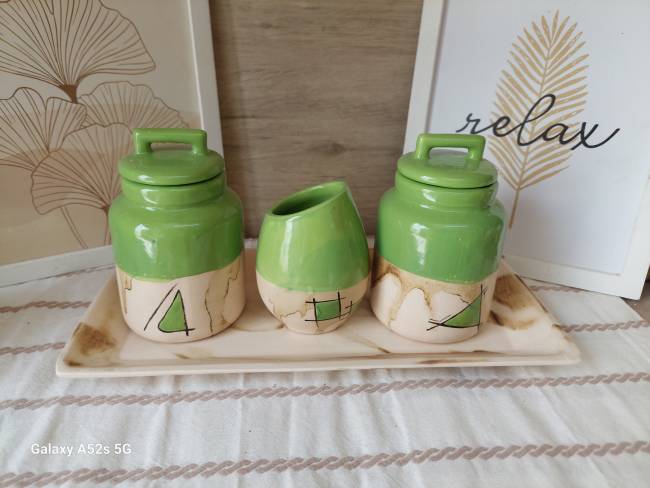 Set Matero: Mate Cinta + Azucarera + Yerbera + Bandeja Rectangular
