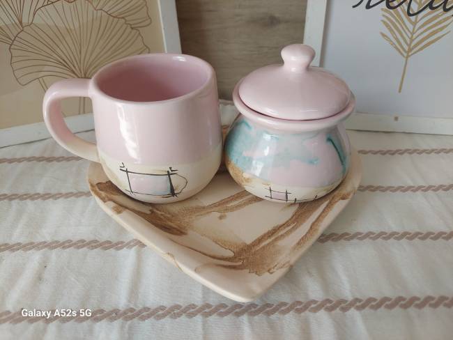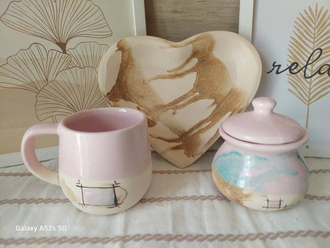 Set: Taza Pera Grande + Azucarera Bombe + PLato Corazón